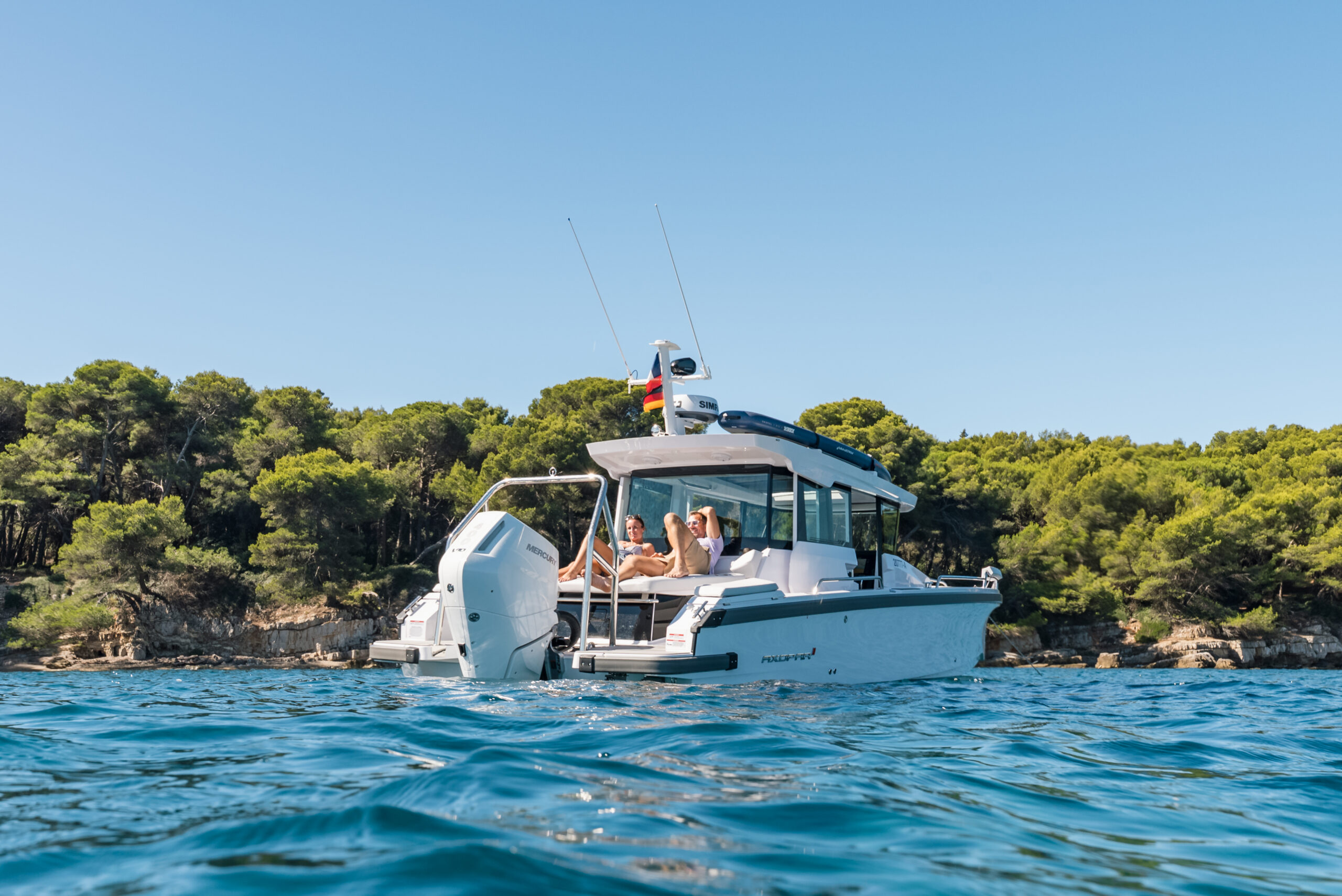 – Mercury V-10 350 dzinējs – BRABUS trim package – Navigācijas sistēma SIMRAD NSX 12″ + eholote
